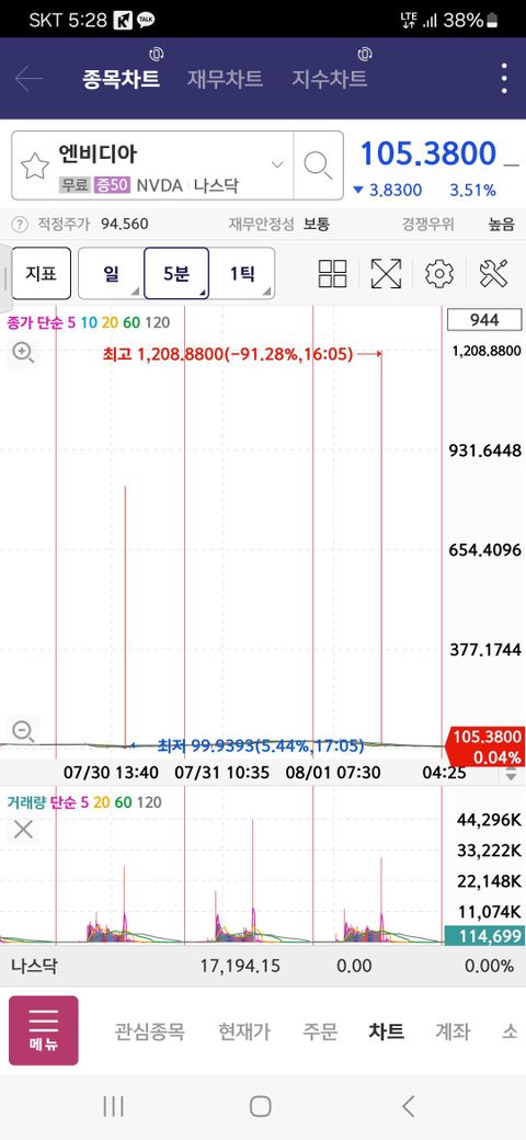 엔비디아 109달러에서 1200달러까지 올랐다 빠지는데 오류인가요?.............., ........