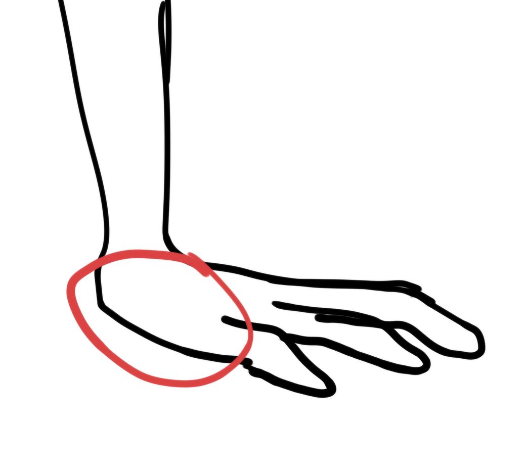 손목 쪽도 아프긴 한데 그보단 손목에서 손으로 올라오는, 손을 오므리면 튀어나오는 엄지 쪽 손바닥 부분에 통증이 많이 옵니다.