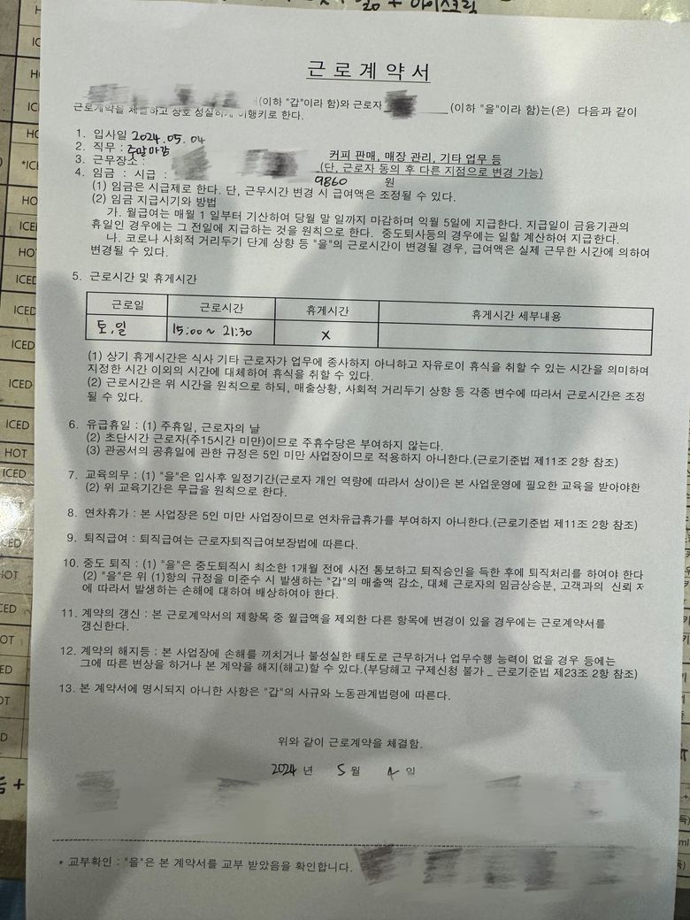 인수인계기간에 대해서도 임금을 계산해야 합니다. 서명을 했다고 하더라도 마찬가지입니다.