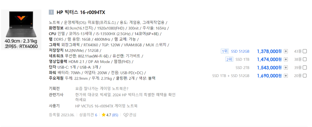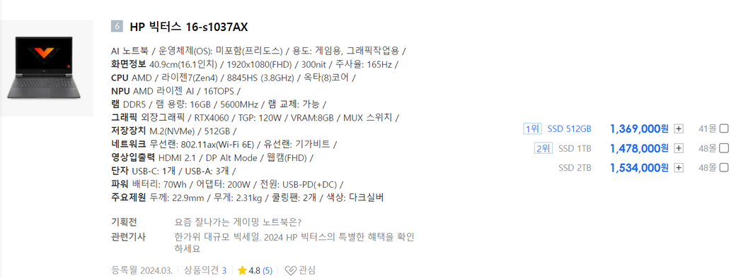 그리고 놑북은 특가 자주 나오니 특가 카페나 정보방 가셔서 뜨시면 구입하는거 추천드립니다