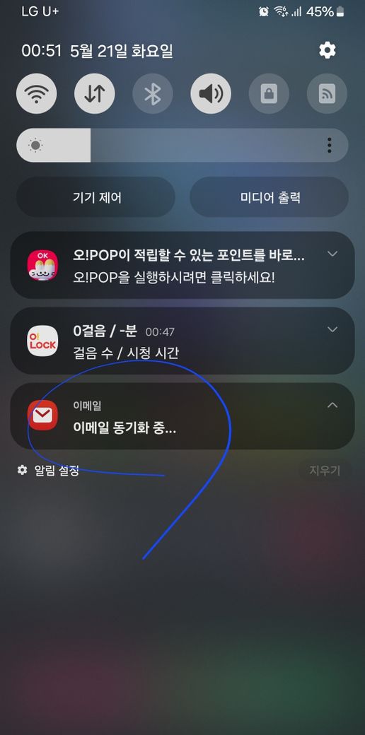 이메일 동기화중이 다른 메일일수도 있어요