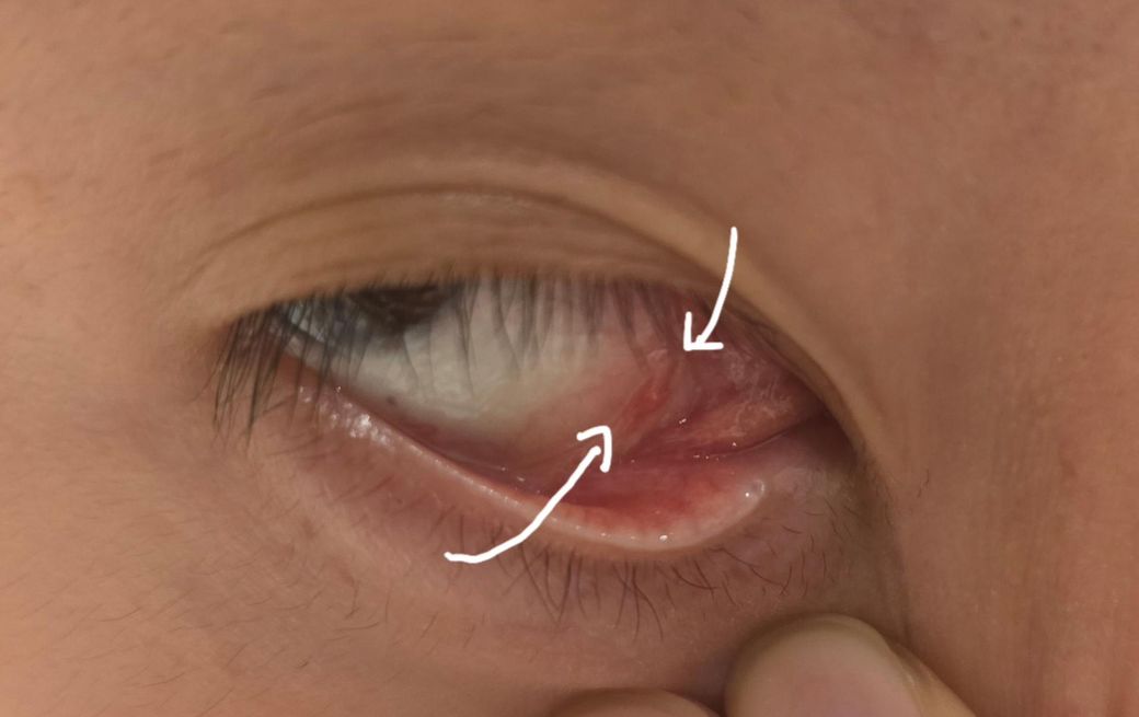 (사진추가) 눈 앞쪽에 빨갛게 무언가 생겼어요ㅠㅠ