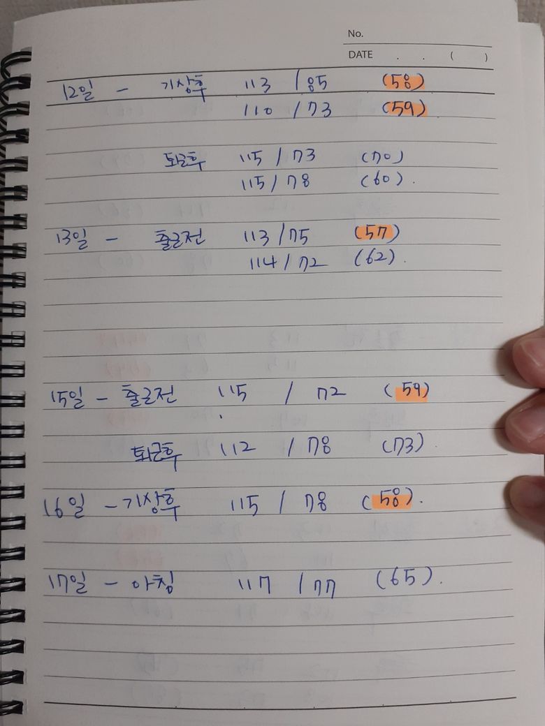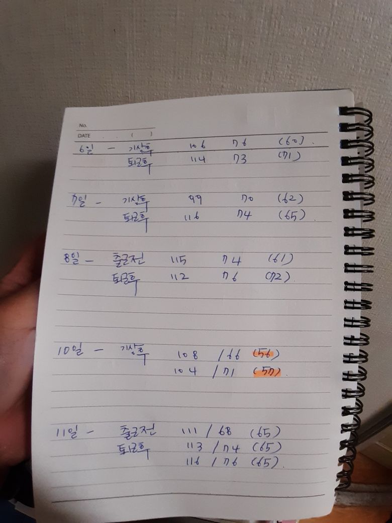 그리고 오늘 앉아서 편하게 컴터를 하는데 맥박 느낌이 좀 그래서 집에서 혈압 재보니 오후 4시쯤
