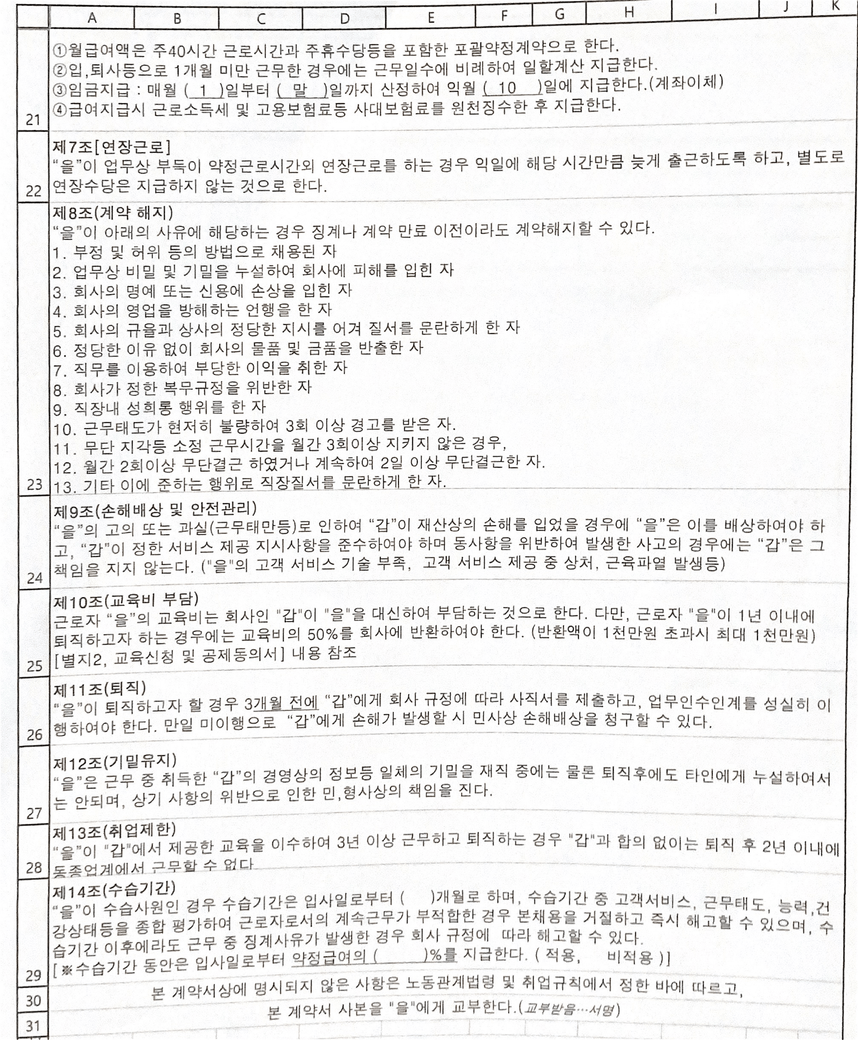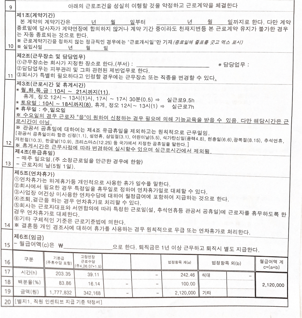 지금 근로계약서 작성하려고 하는데 문제점이 없나요?