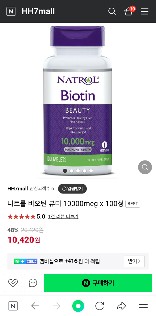 다만 비오틴 함량이 10mg이라면 꽤 높은 편이므로,