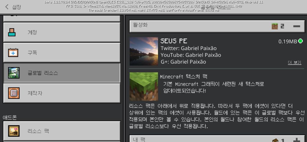 마인크래프트 모바일 PE 쉐이더가 적용이 안됩니다.