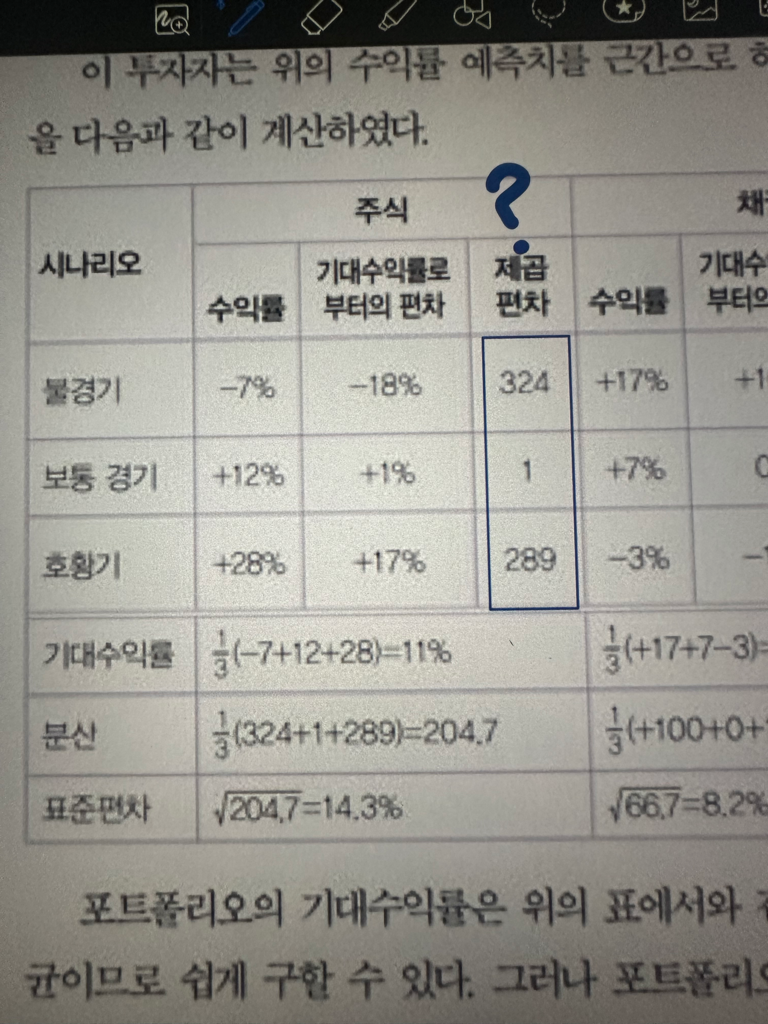 표에 편차가 이미 나와 있고, 이를 제곱한 값입니다.