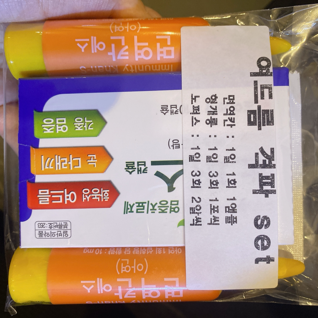 면역칸 1앰플에 형개롱, 노퍼스를 아침에 한번 같이 드시고 점심, 저녁은 형개롱과 노퍼스만 드시면 되겠습니다.