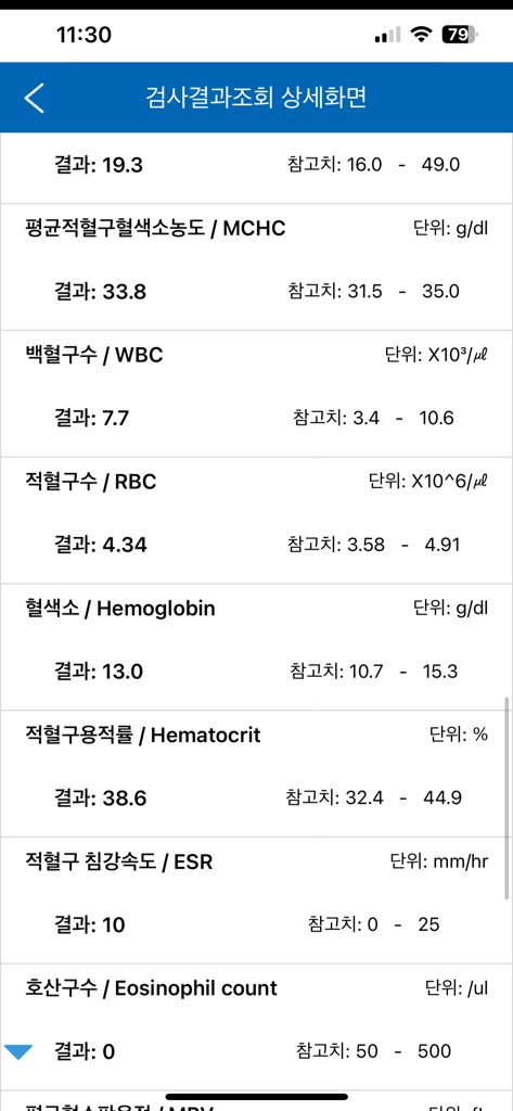 호산구는 높으면 알레르기 질환있다고 의심해볼수 있는데 낮은건 별 의미 없겠습니다