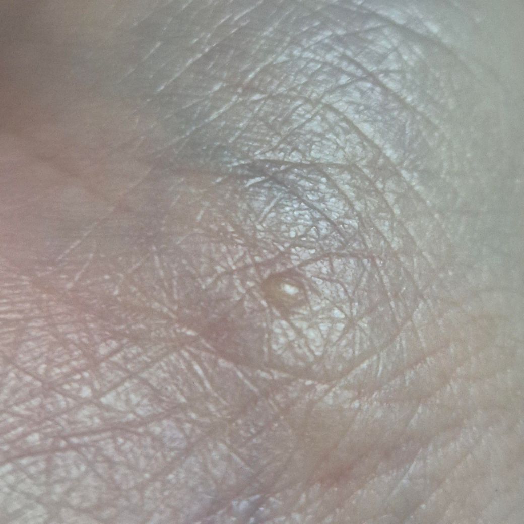 약간 투명한느낌이고 작아요. 간지럽지도 않고 아프지도 않아요. 오래됐구요. 저거 딱 하나 있어요.