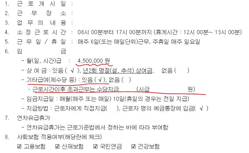 근로계약서 작성히 초과근무수당에 따른 시급계산 방법은?