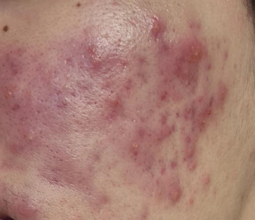 오른쪽 볼 사진인데 전보다 붉은 여드름에 농이 많이 찬 느낌이에요. 제발 도와주세요....ㅠㅠ