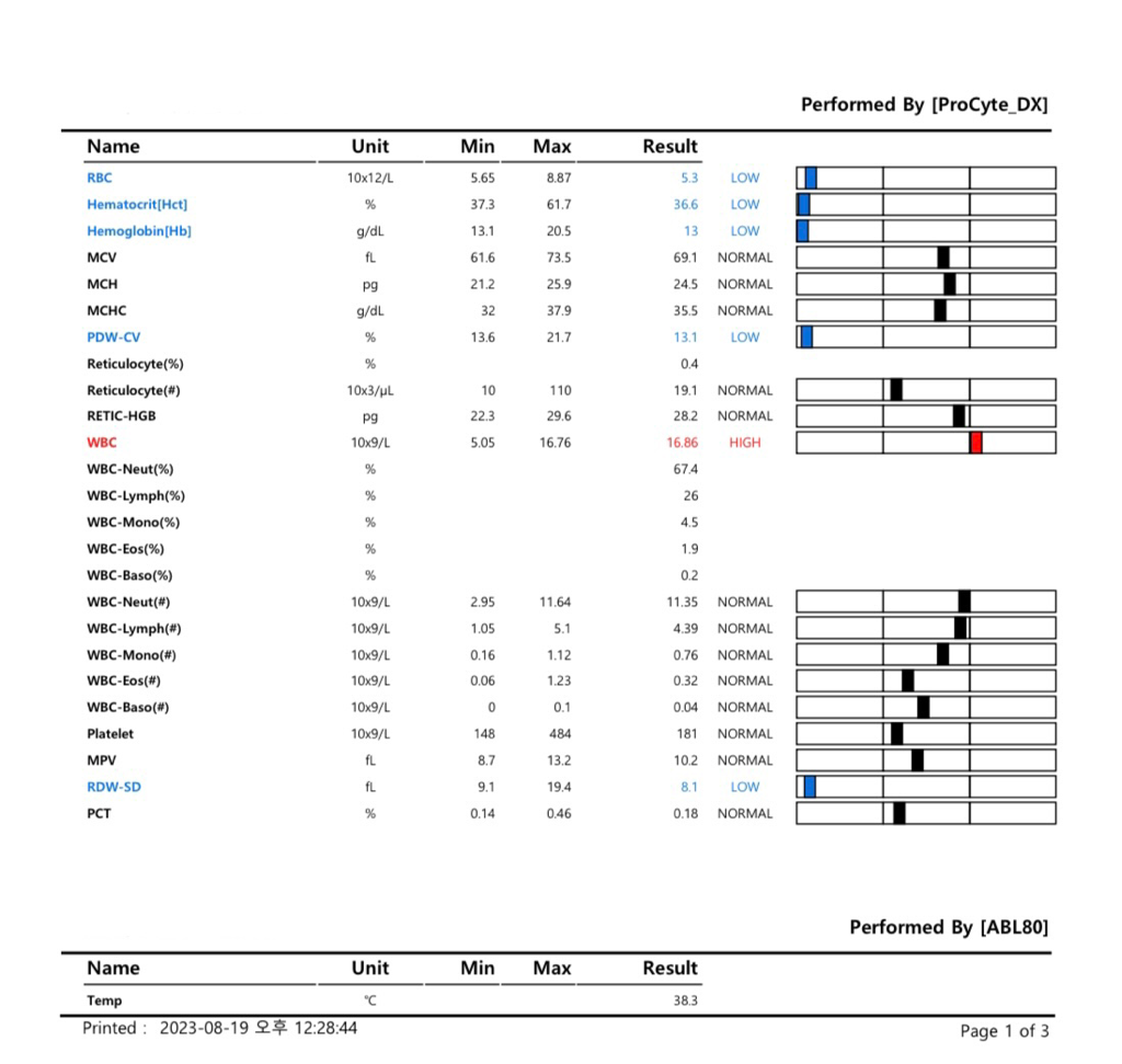혈액검사 결과지 좀 봐주실 수 있나요?