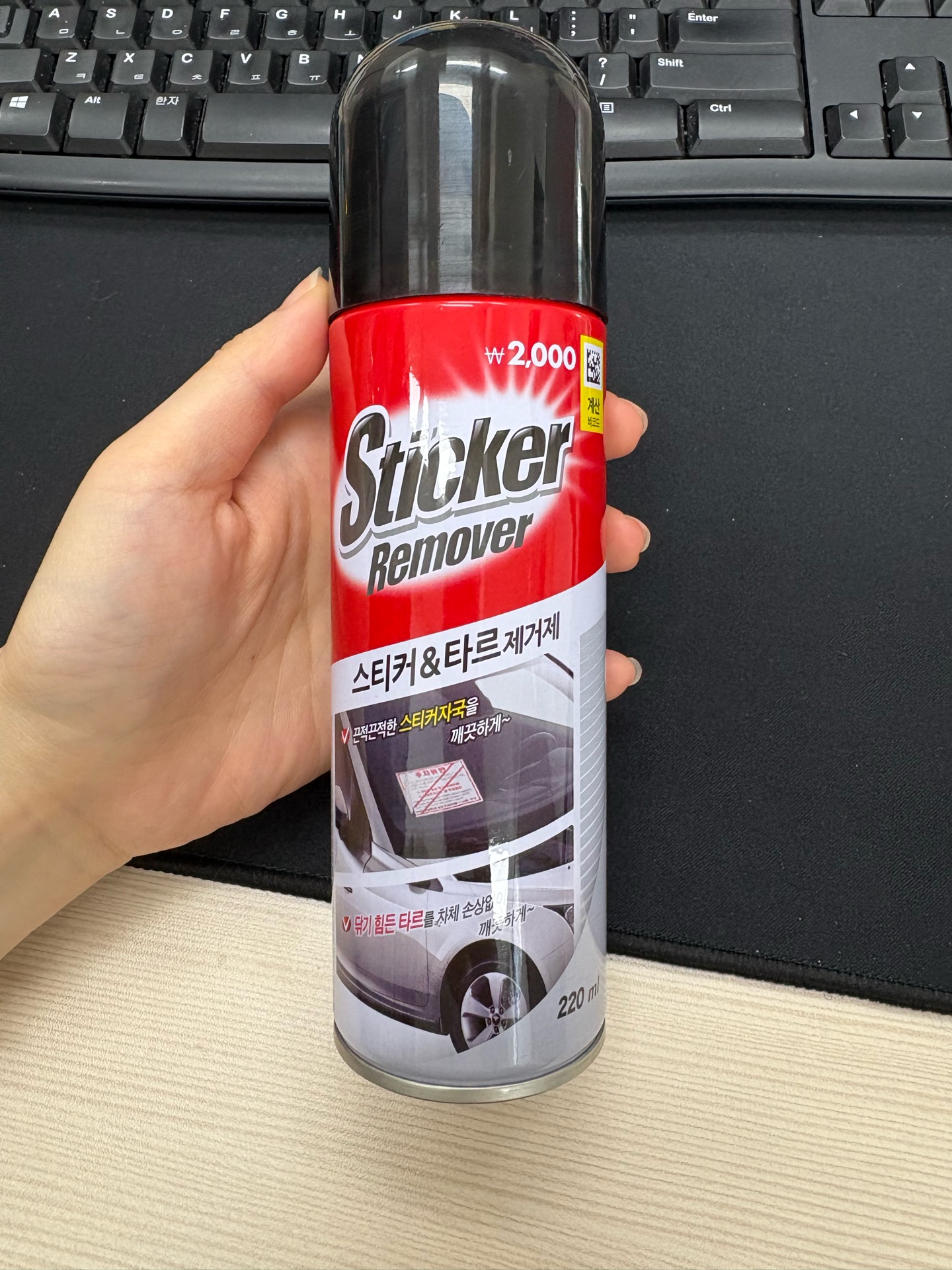다이소에서 파는 스티커제거제 2000원이에요 큰 힘 안들이고 지울수있어요 여기저기 활용하기도 좋아서 하나 사두시는거 추천드립니당 !!!