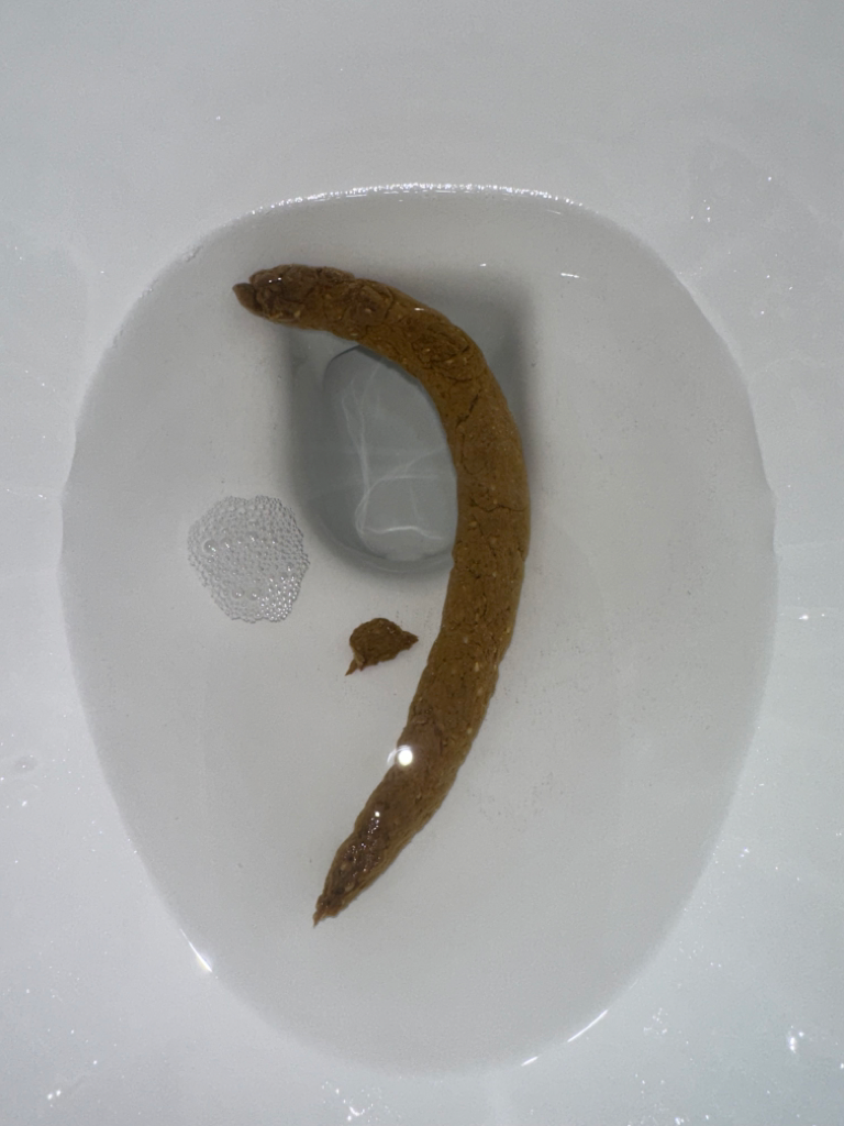 사진 속의 대변 소견을 통해서 보았을 때에는 이상 소견이 딱히 보이지 않습니다. 색깔에 문제가 있어 보이지 않으며 모양에도 이상 소견이 있지 않습니다. 걱정할 것 없어 보입니다.