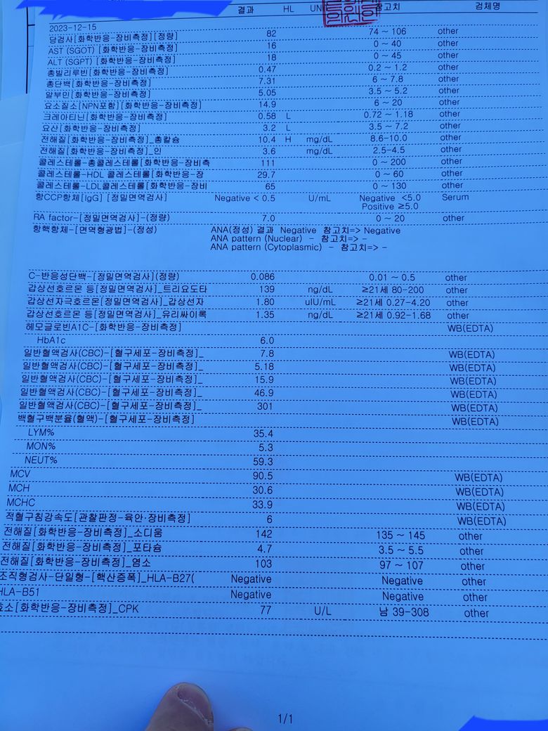 피검사 기록지를받앗는데요 결과가 머가먼지설명들어도모르겟네요