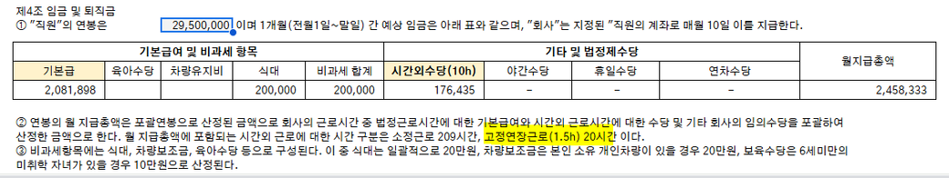 고정연장근로는 20시간이라고 해놨는데 왜 시간외수당을 10시간으로 계산해둔지도 모르겠고 ..