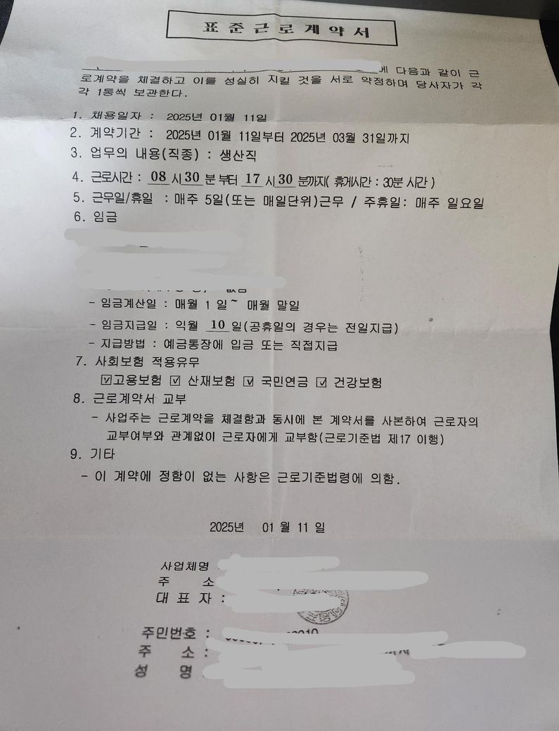 일단 제가 1월부터 3월까지 단기직 근로 계약서를 쓰고 들어갔다가 인력 부족으로 3월 이후로도 9월까지 일하고 퇴사했습니다