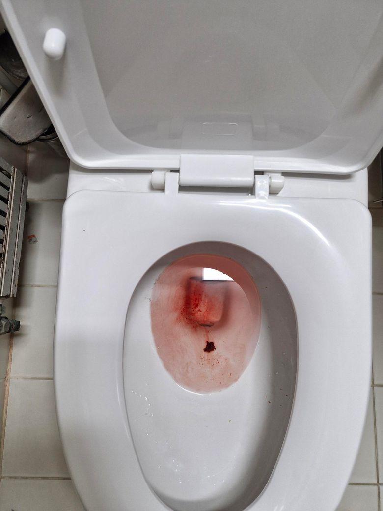 방금변을봣는데요 피를봐가지고요물어봅니다 사진첨보하고요 대변은 안보고바로믈내려서 모르겟습니다 사진속에나오는 대변은약간 나온대변입니다