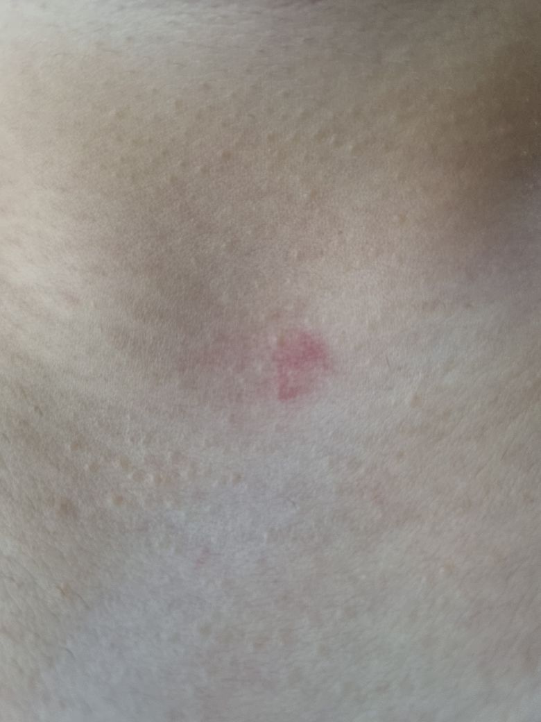 올려주신 사진은 간경화시 나타날 수 있는 거미혈관종(slider angioma)의 가능성은 낮아 보입니다.