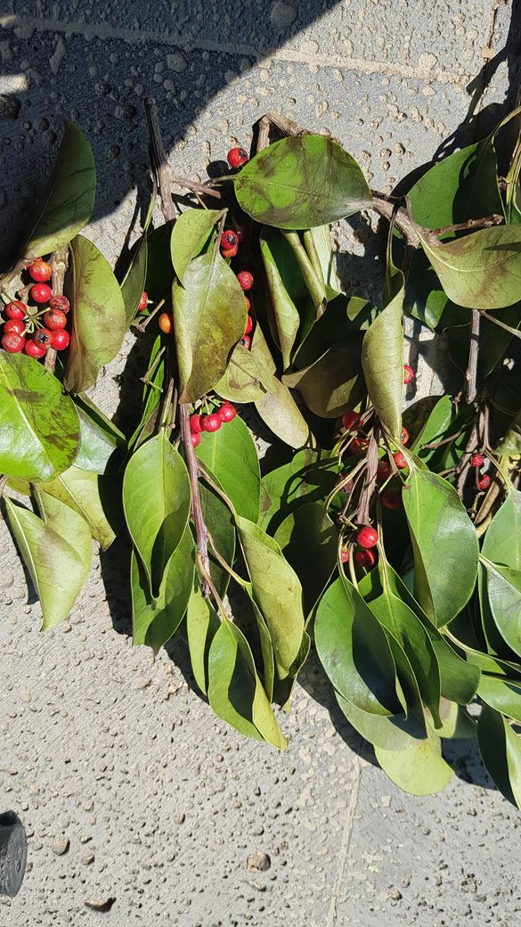 안녕하세요. 박창민 수의사입니다. 사진상으로는 호자나무 열매인 거 같습니다. 학명은 Ardisia crenata 또는 Ardisia japonica입니다. 식용은 추천하지 않습니다. 감사합니다.