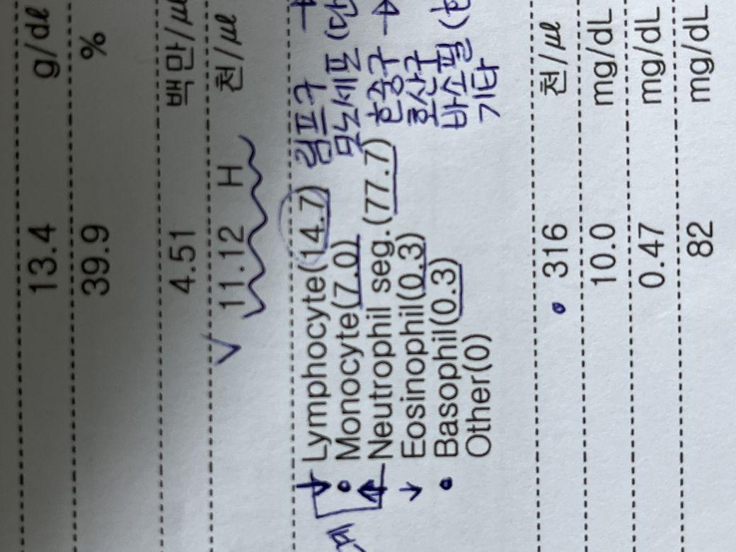 정상보다 백혈구 수치가 높아요 ㅠ