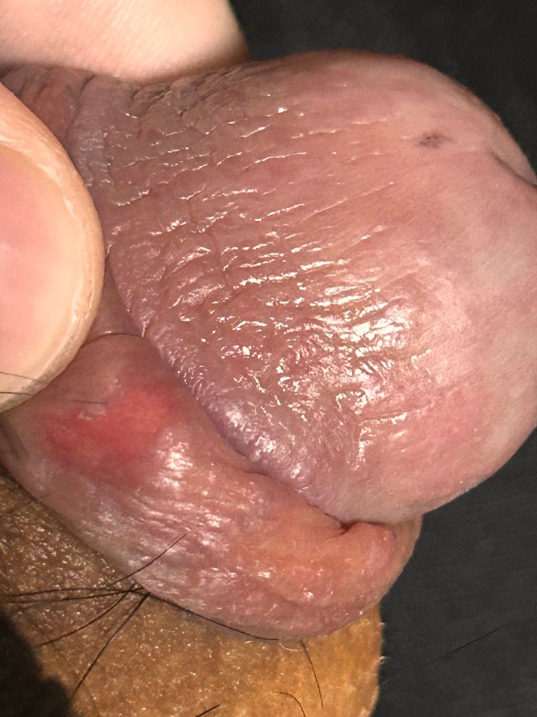 집에 있는 항생제 연고나 스테로이드 연고를 함부로 바르면 병변의 모양이 변해 정확한 진단을 방해하거나, 만약 원인이 곰팡이균일 경우 증상을 더 악화시킬 수 있어 사용하지 마시고, 자극을 최소화하기 위해 비누를 과하게 사용하기보다는 미지근한 물로 가볍게 씻은 뒤 잘 말리도록 하고, 성병이 배제 될 때까진 당분간 성관계는 피해야 하겠습니다.