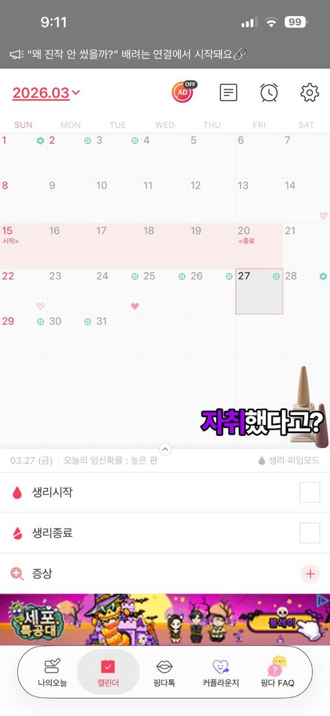 저번 달 생리는 2월13일이었고 이번 달 생리 끝나고 가임기 시작했는데 첫 날에 질내사정을 했어요.. 앱이 정확한 건 아니지만 한 번이어도 불안해서요 .. 네이버로 계산 해보면 아닌 거 같고 다른 건 또 맞아서 , 일단 임테기 할 날까지 기다려보려고 하구요 배란5일전부터 임신 가능성 높다해서 높을까요..?