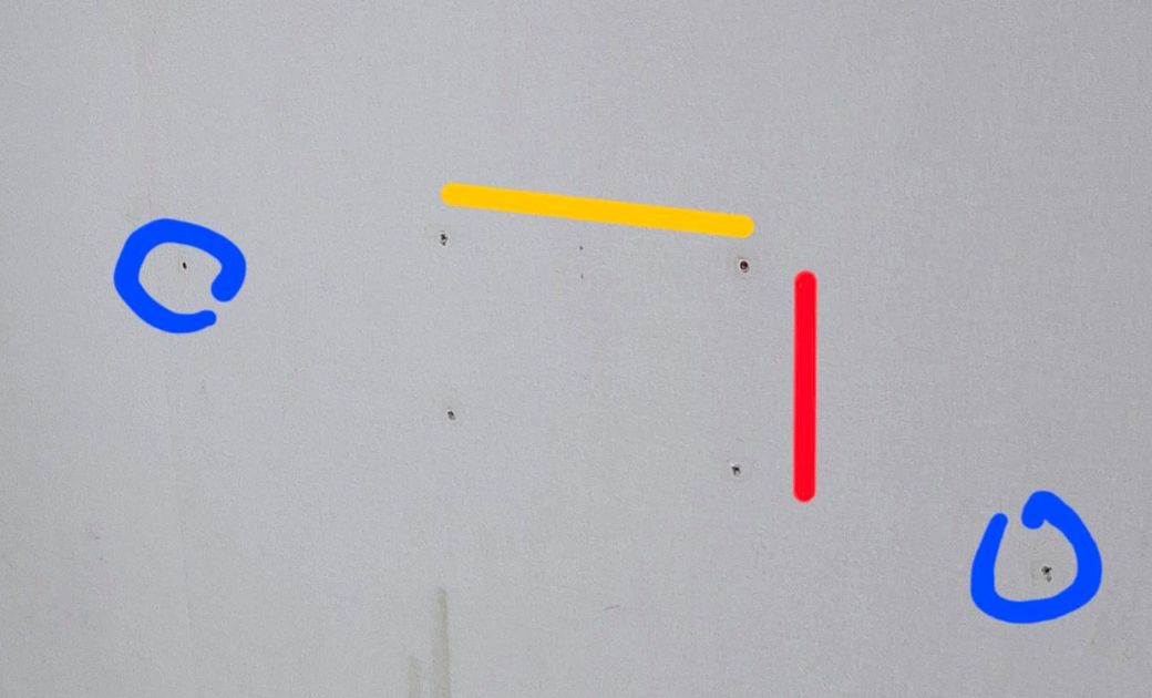파란색 구멍은 아마 예전 다른 용도의 나사 구멍이거나 벽걸이용 브라켓 고정 구멍이 아닐 가능성이 큽니다. 직접 사용 용도는 확인하기 어렵지만, 무시해도 무방합니다.