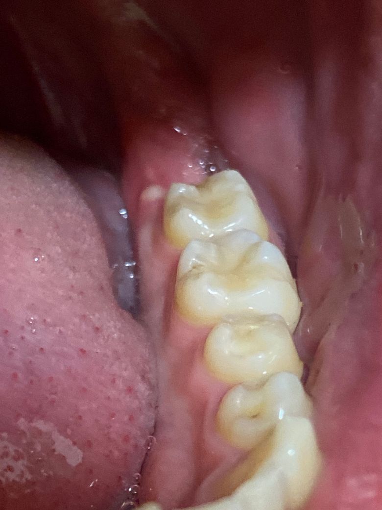 양치하고 입을 벌려 확인을 할때 매복사랑니 뽑은 잇몸쪽에 희미하게 휜 무언가가 있었는데 오늘 보니 색이 좀 더 진해진 느낌이네요..따로 아프거나 하진 않는데 혹시 뭘까요?
