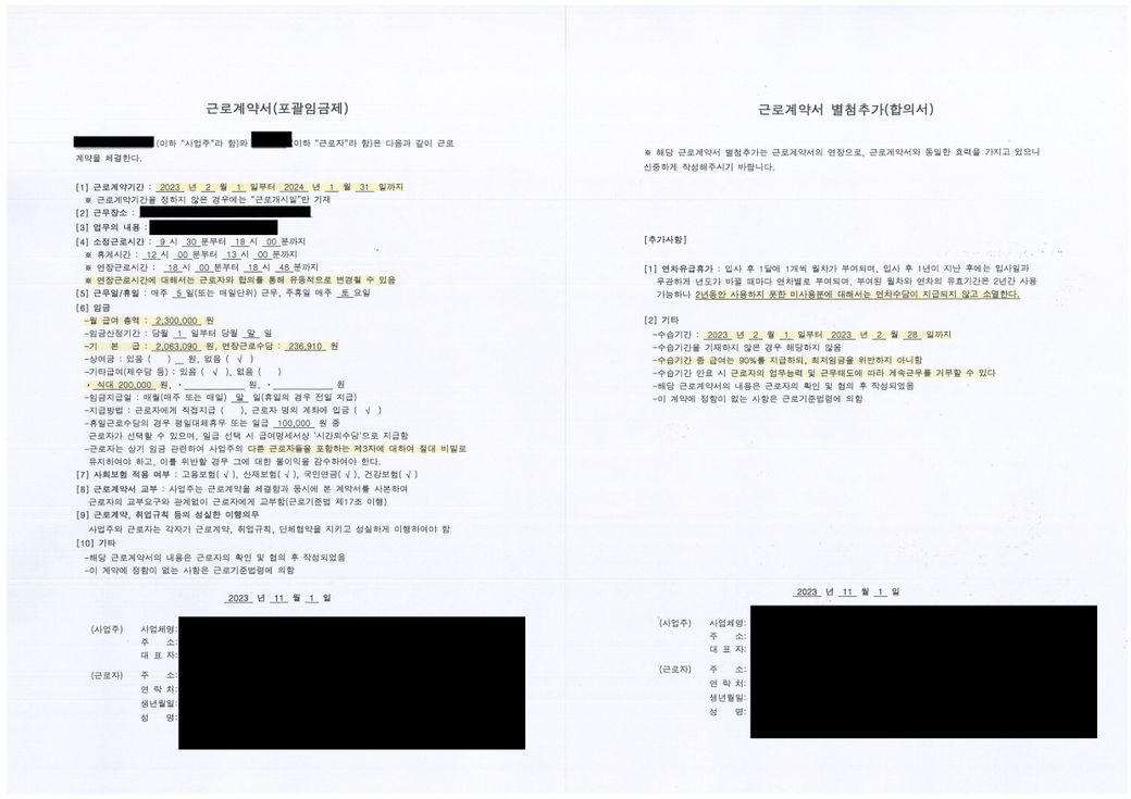 3. 근로계약서 내용이 바뀐다면 거부할 수 있습니다.