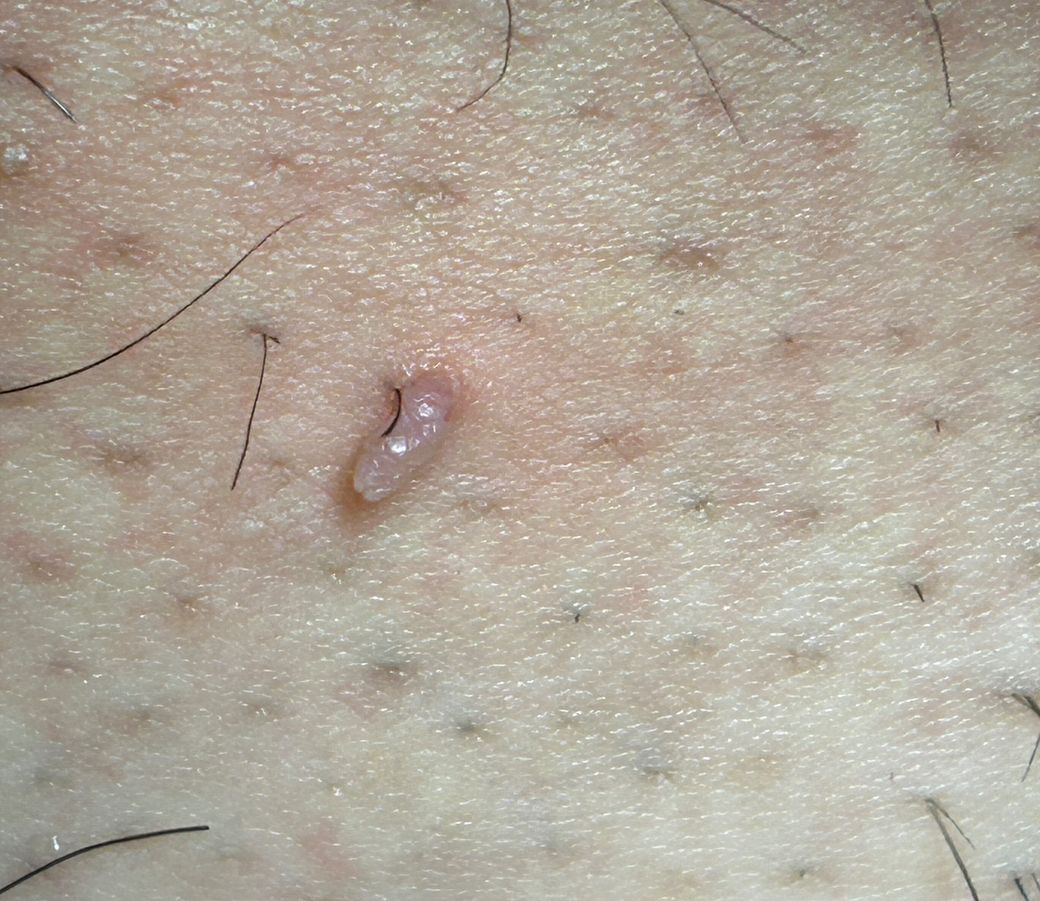 곤지름이나 헤르페스과 같이 성접촉으로 발생하는 병변에서 관찰되는 수포성 변화나 사마귀 형태의 병변이 아니므로 성매개 피부 감염으로 보이지는 않습니다. 연부 조직이 늘어나있는 형태로 쥐젖과 같은 연성 조직으로 추정됩니다. 증상이 없고 크기나 모양의 변화가 없다면 경과 관찰 가능하면 제거를 원한다면 레이져나 냉동 치료로 제거가 가능할 것으로 판단됩니다.