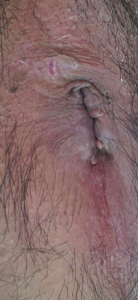 치핵 주위 피부태그(skin tag): 배변 후 생긴 피부 늘어짐.