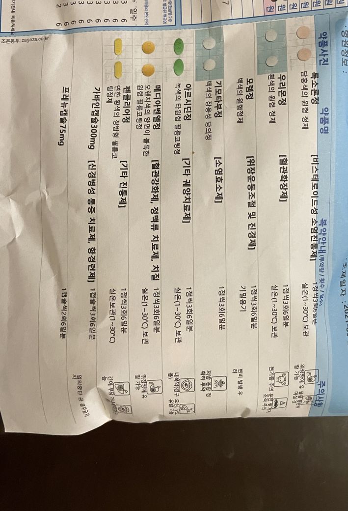 얼마 전(8월 마지막 주) 정형외과에 허리 시술을 받고 현재까지 이 약물들을 복용하고 있습니다. (매일 3회)