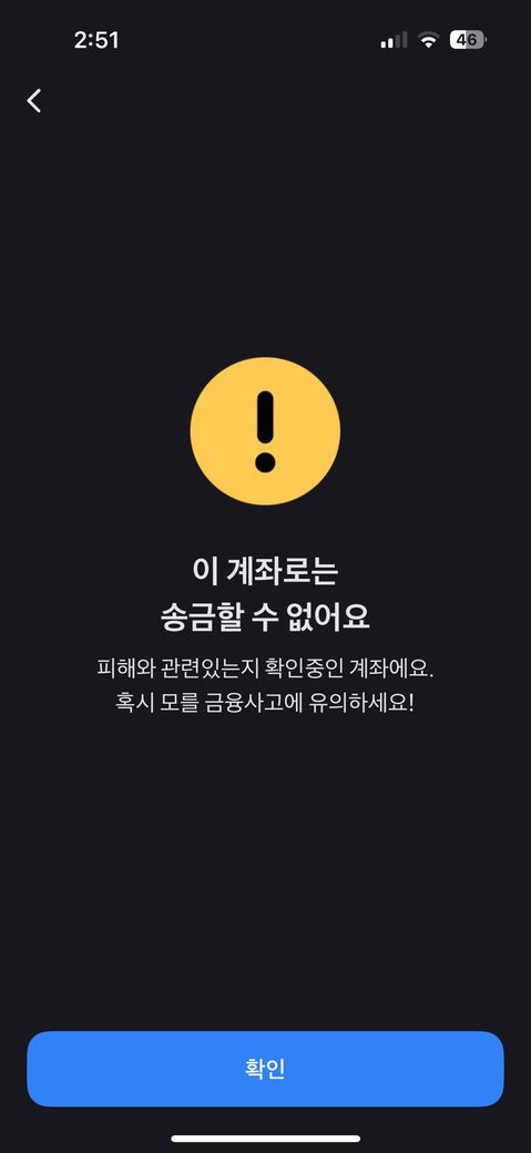 토스뱅크에서 카카오뱅크 계좌로 입금하려할때 이런 문구가 뜨고 입금이 안돼요..근데 카뱅계좌에서 다름 계좌로는 입출금 모두 가능해서 뭔지 모르겠어서 글 남겨봅니다 잘못되면 계좌 정지 당하는건가요?