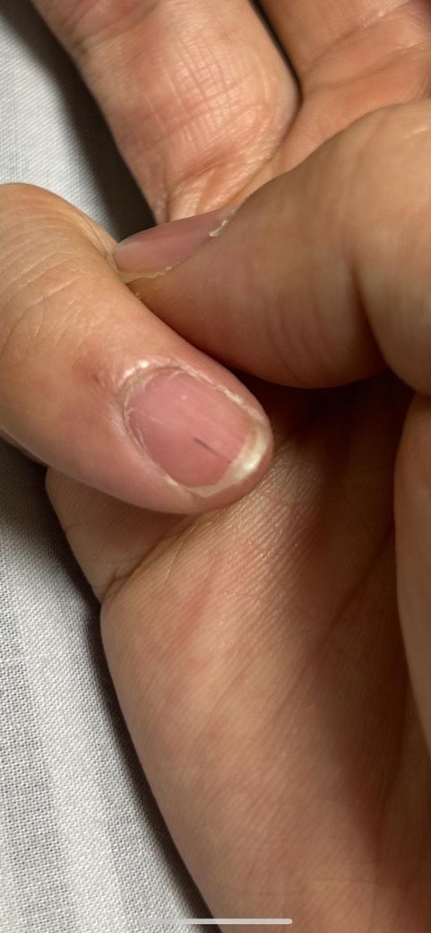 어느 순간 보니 새끼손톱에 검은 세로 줄이 생겼어요 예전에 뭐 안좋은 증상이라고 들었던거같아서요ㅠ 심각한건가요?