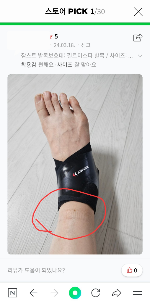 사진은 엄마 사드리려고 발목 보호대 보다가 본 리뷰인데 부위 표시하기 좋을 것 같아서 동그라미 표시했어요