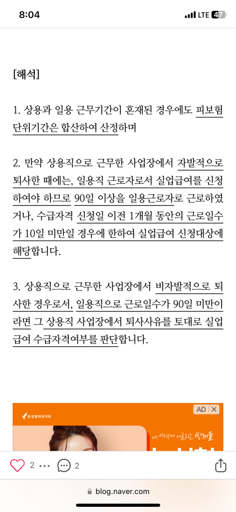 저는 03-06일자부터 근무하여 총 90일이상 근무하엿는데 고용보험이 가입된 기준일자로부터 반영되는거면은 3번의 상용직 사업장의 퇴사사유를 토대로 수급여부판단한다는데 그럼 저는 실업급여 신청을 못하는건가요?! 지금 급 화나고 억울하네요 신청안된다하면은.