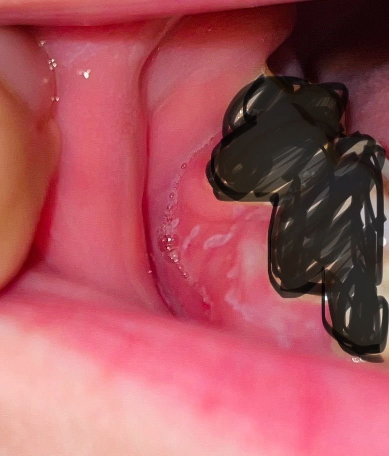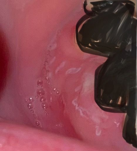 하루 전부터 갑자기 구내염처럼 저렇게 흰색 물집이 생겼습니다 (거품같이 보이는 것은 침입니다..)