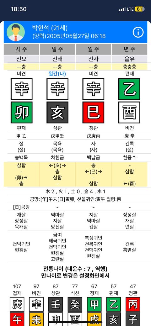 보내주신 사진이 완전히 전부는 아니지만 갖고있는 지식으로 봤을때 도화살이 있는거 같습니다. 사주는 재미로 보는거지 100프로 현실은 아니니까 너무 신경쓰진 마시구요.
