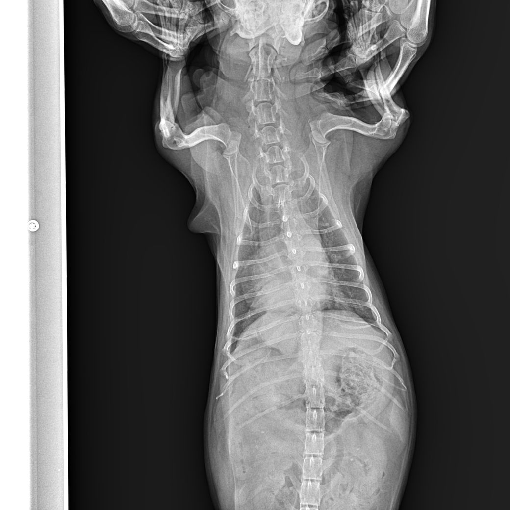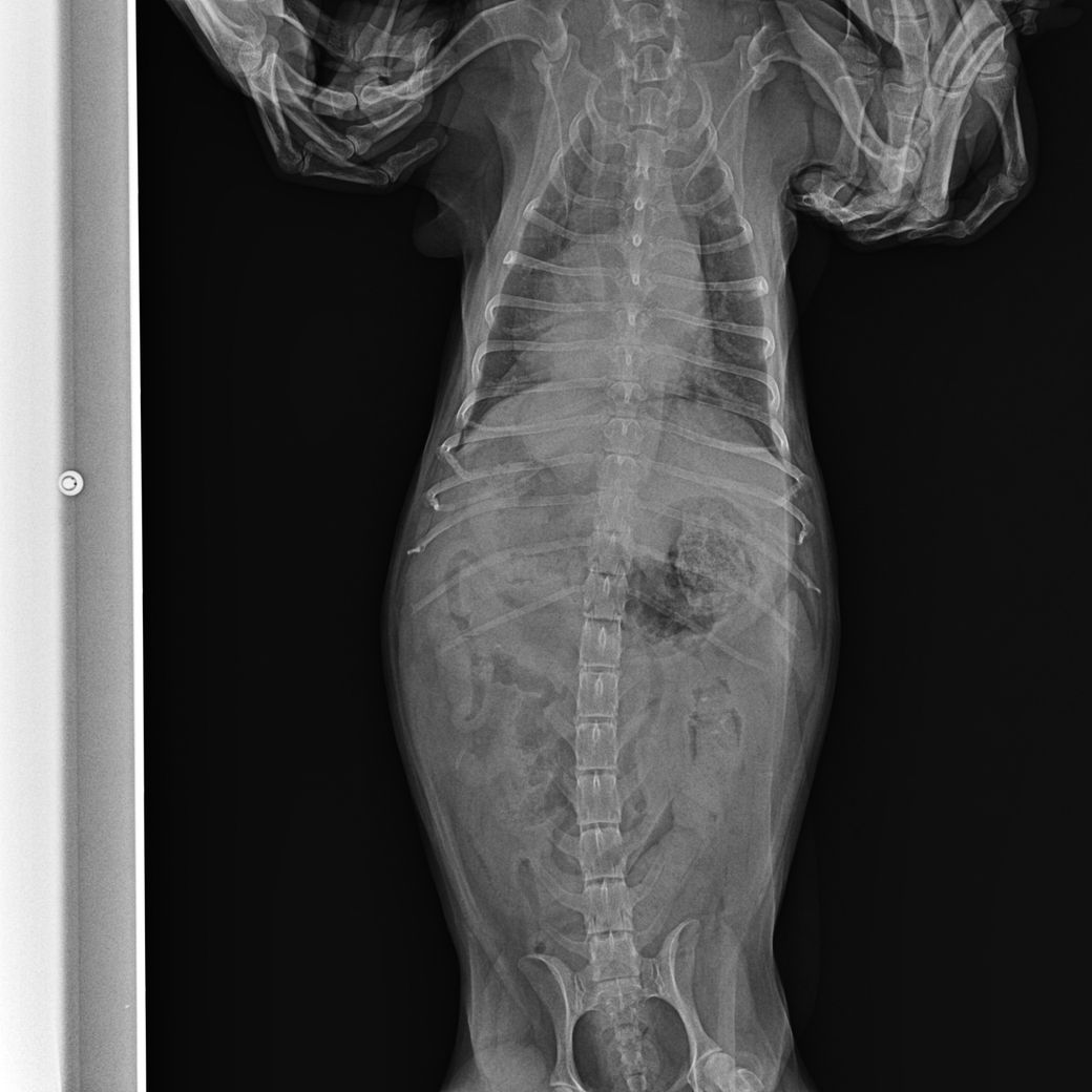 또한 폐쪽도 강아지가 긴장하고 통증을 호소하게 되는 경우 호흡이 빠르므로 호기시 촬영한다면 폐가 뿌옇게 보일 수도 있습니다.