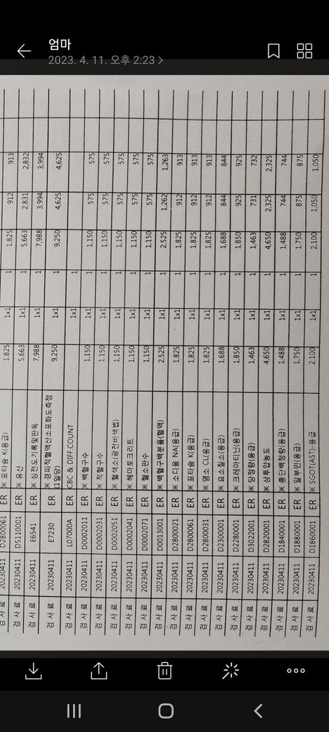 응급실 진료산정내역서인데요. ......