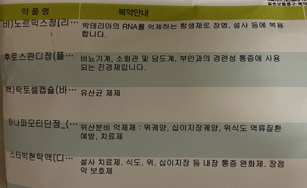 장염약 내역은 아래와 같습니다 ㅠㅠ
