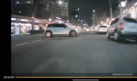 저 차량이 저 구간에서 왔다갔다 하다가 멈추길래 지나가려했는데, 앞으로 움직여서 피하려다가 주차된 차를 파손 시켰습니다