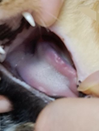 실제 많은 고양이가 강제로 입을 벌리는데서 오는 긴장과 스트레스로 일시적으로 청색증이 나타나기도 하기에 사진만 보고 이상 여부를 평가하는데 제한이 있습니다.