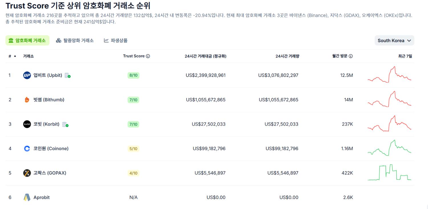 아래 순위 보면 아직 단순 거래량 기준으로는 업비트에 뒤집니다.