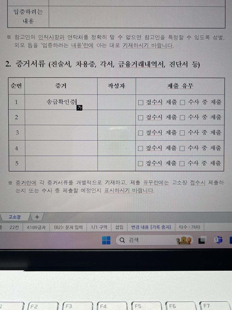 고소장 증거서류 송금확인증에 어떻게 써야하나요?