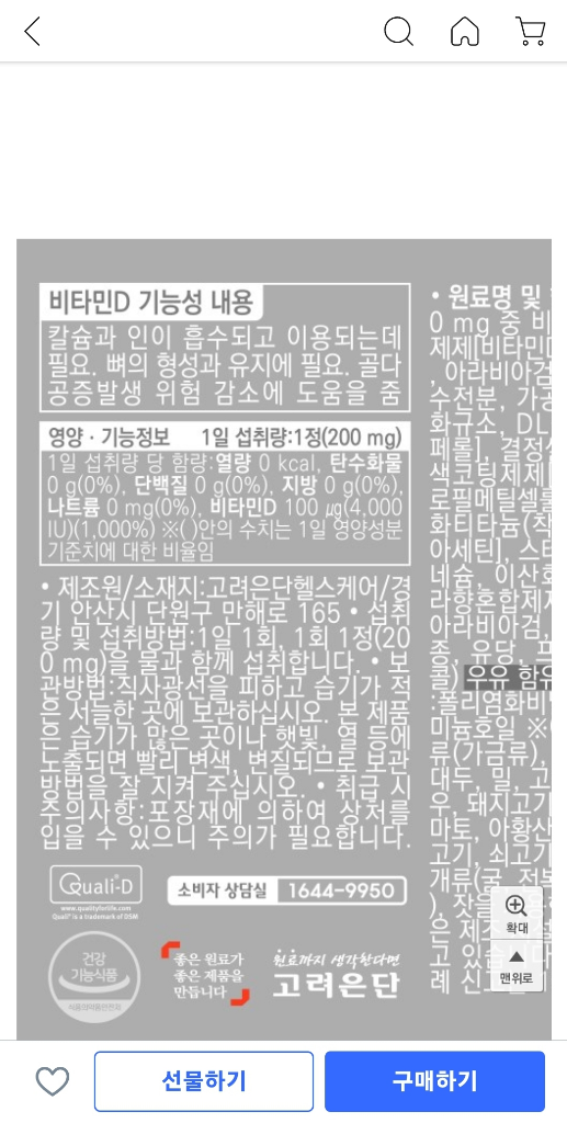 비타민D가 4,400IU 이므로 부족해보이지는 않습니다.