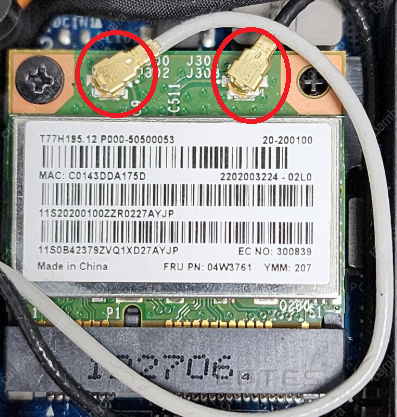 노트북 보드에 있는 wifi칩을 보면 선 두개가 마치