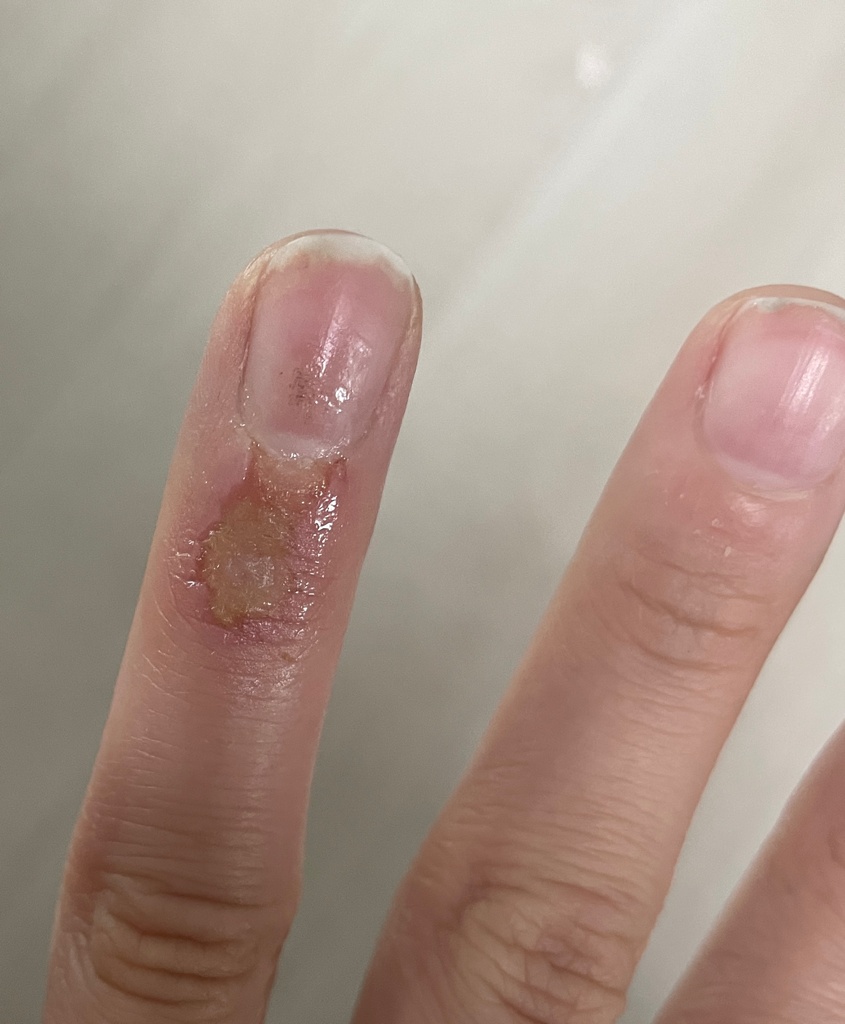봉합이 필요한 상처는 아니지만 흉터가 남을 가능성이 있는 상처입니다. 흉터를 최소화하고자 한다면 가까운 피부과 혹은 성형외과에서 관리받아보시거나, 흉터는 감안하고 연고 바르며 지내보실 수 있겠습니다.